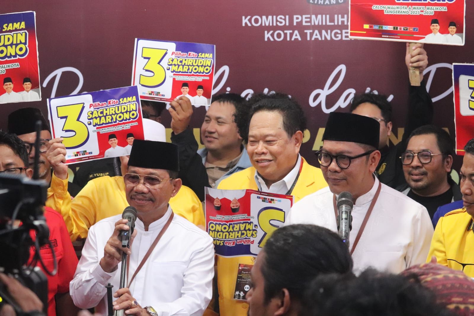 KOTA TANGERANG – Pasangan calon (Paslon) Sachrudin-Maryono Hasan mendapat nomor urut 3 dalam mengikuti kontestasi Pemilihan Wali Kota dan Wakil Wali Kota (Pilwalkot) Tangerang 2024. Nomor urut tersebut disebutkan menjadi kekuatan untuk menuju kemenangan mendatang.