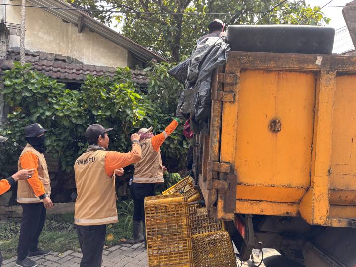 Sebanyak 195 petugas kebersihan diterjunkan untuk mengangkut tumpukan sampah yang terbawa banjir dan membersihkan lingkungan permukiman warga, fasilitas umum, serta ruas jalan yang terdampak.