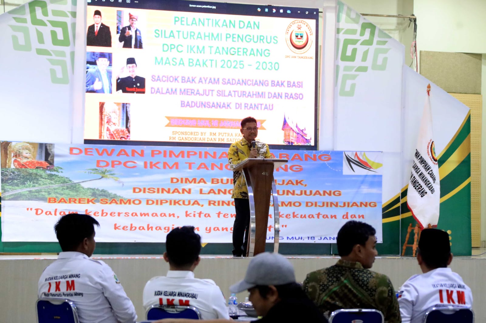 Ajakan tersebut disampaikan dalam acara Pelantikan Pengurus Dewan Pimpinan Cabang IKM Tangerang Periode 2025–2030, yang digelar di Gedung MUI Kota Tangerang, Minggu (18/01/2026).