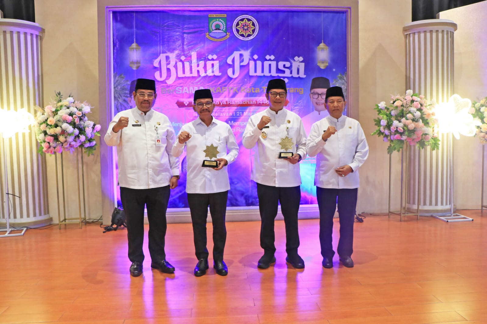 TANGERANG KOTA, Sekitartangerang Wali Kota Tangerang H. Sachrudin didampingi Wakil Wali Kota Tangerang H. Maryono Hasan, serta Sekretaris Daerah Kota Tangerang, Herman Suwarman, menghadiri acara Buka Bersama (Bukber) Ikatan Keluarga Alumni Pendidikan Tinggi Kepamongprajaan (IKAPTK) Kota Tangerang yang digelar di Ballroom Istana Nelayan Restaurant, Kota Tangerang, Jumat (21/3/2025).
