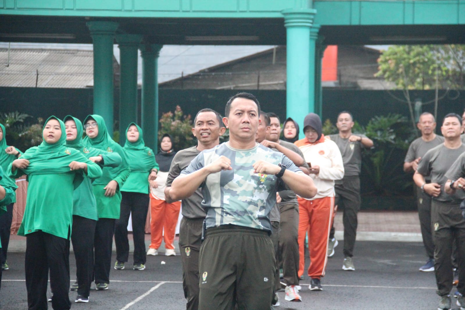 Dalam kunjungan kerja Dandim yang di dampingi Ketua Persit KCK Cabang XX Kodim 0506/Tgr PD Jaya NY. Fitria Ary Sutrisno di rangkai dengan senam Aerobik dan dilanjutkan jalan santai bersama.