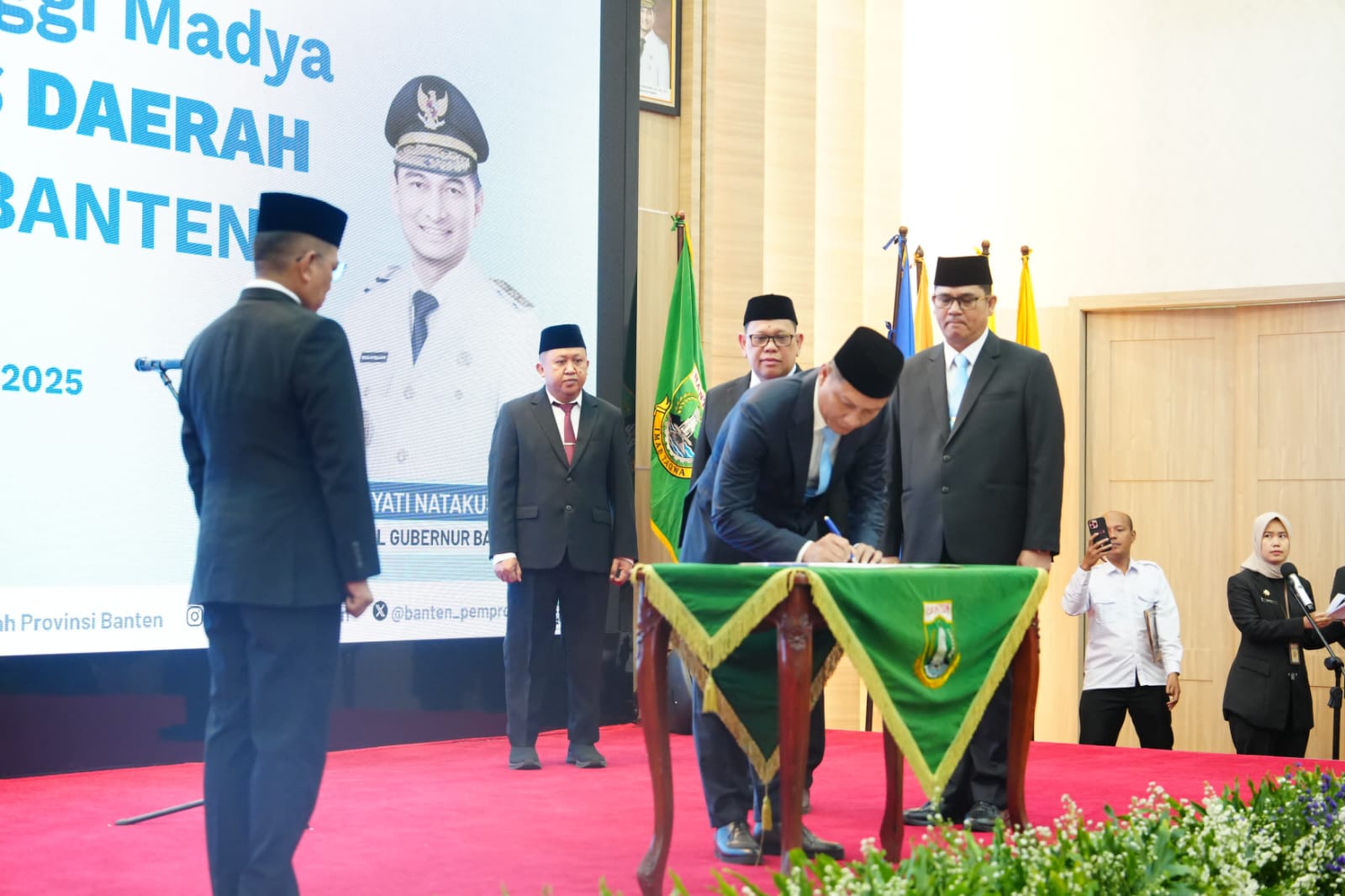 TANGERANG KOTA, Sekitartangerang Komandan Korem 052/Wijayakrama Brigjen TNI Zulhadrie S. Mara, M.Han., hari ini menghadiri acara pelantikan Sekretaris Daerah (Sekda) Provinsi Banten, H. Deden Apriandhi Hartawan, S.STP.,M.Si., yang dilantik oleh Gubernur Banten, Andra Soni, S.M.,M.AP., bertempat di Pendopo Gubernur Banten, Jalan Syech Nawawi Al-Bantani, Kecamatan Curug, Kota Serang. Rabu (9/7/2025).
