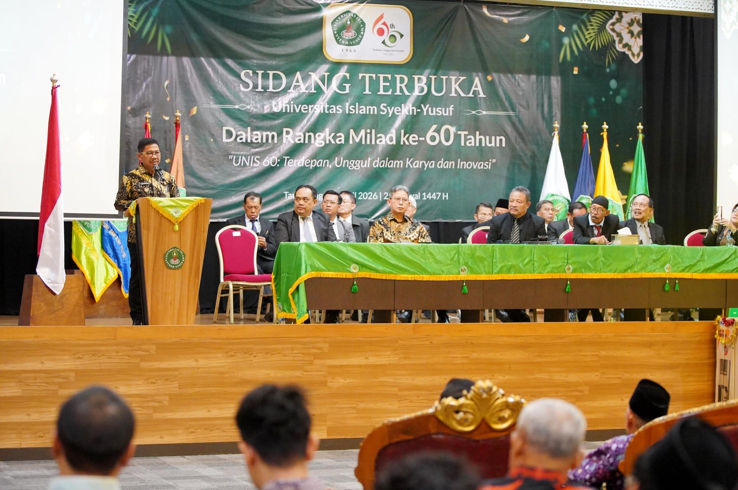 “Kami membutuhkan kampus yang tidak hanya berperan di dalam lingkungan internalnya, tetapi juga hadir dan berkontribusi langsung di tengah masyarakat,” tegas Sachrudin saat menghadiri Sidang Terbuka dalam rangka Milad ke-60 Universitas Islam Syekh-Yusuf (UNIS) Tangerang yang digelar pada Selasa (14/4/2026).