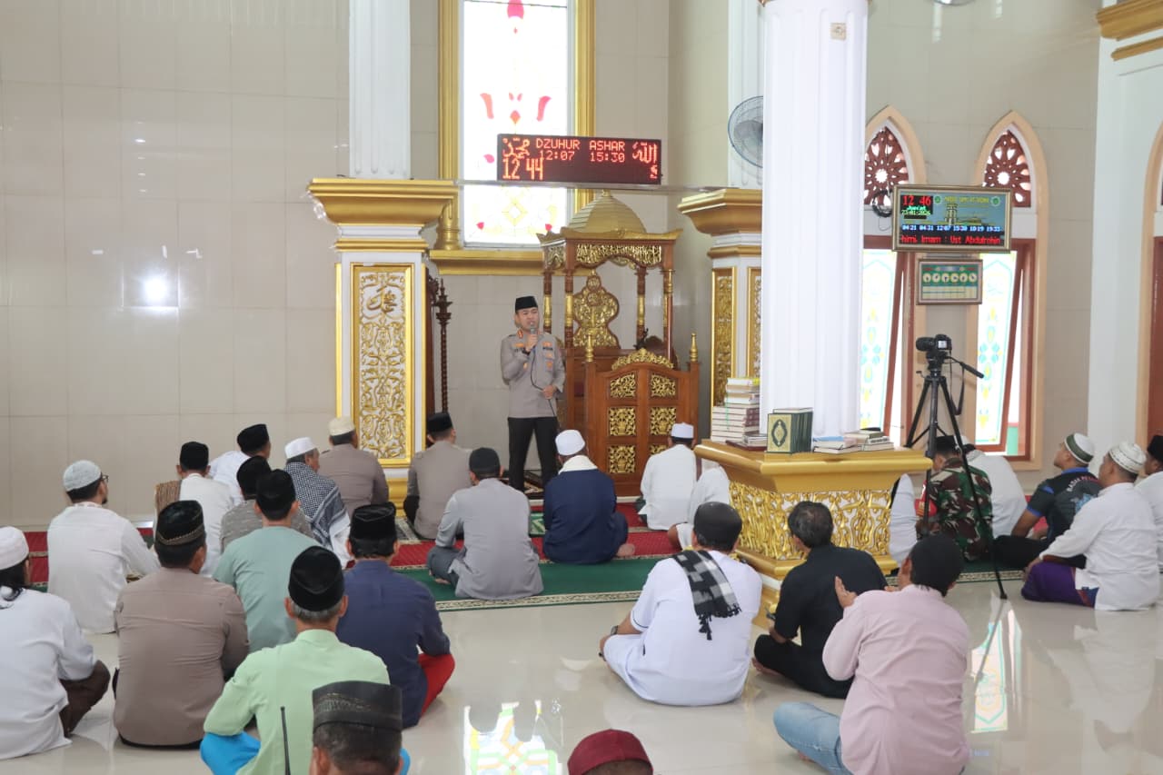Dalam kegiatan tersebut, Kapolres Metro Tangerang Kota hadir bersama Wakapolres serta sejumlah Pejabat Utama Polres Metro Tangerang Kota, unsur Forkopimkel, tokoh agama, tokoh masyarakat, dan jamaah Masjid Jami At-Taqwa.