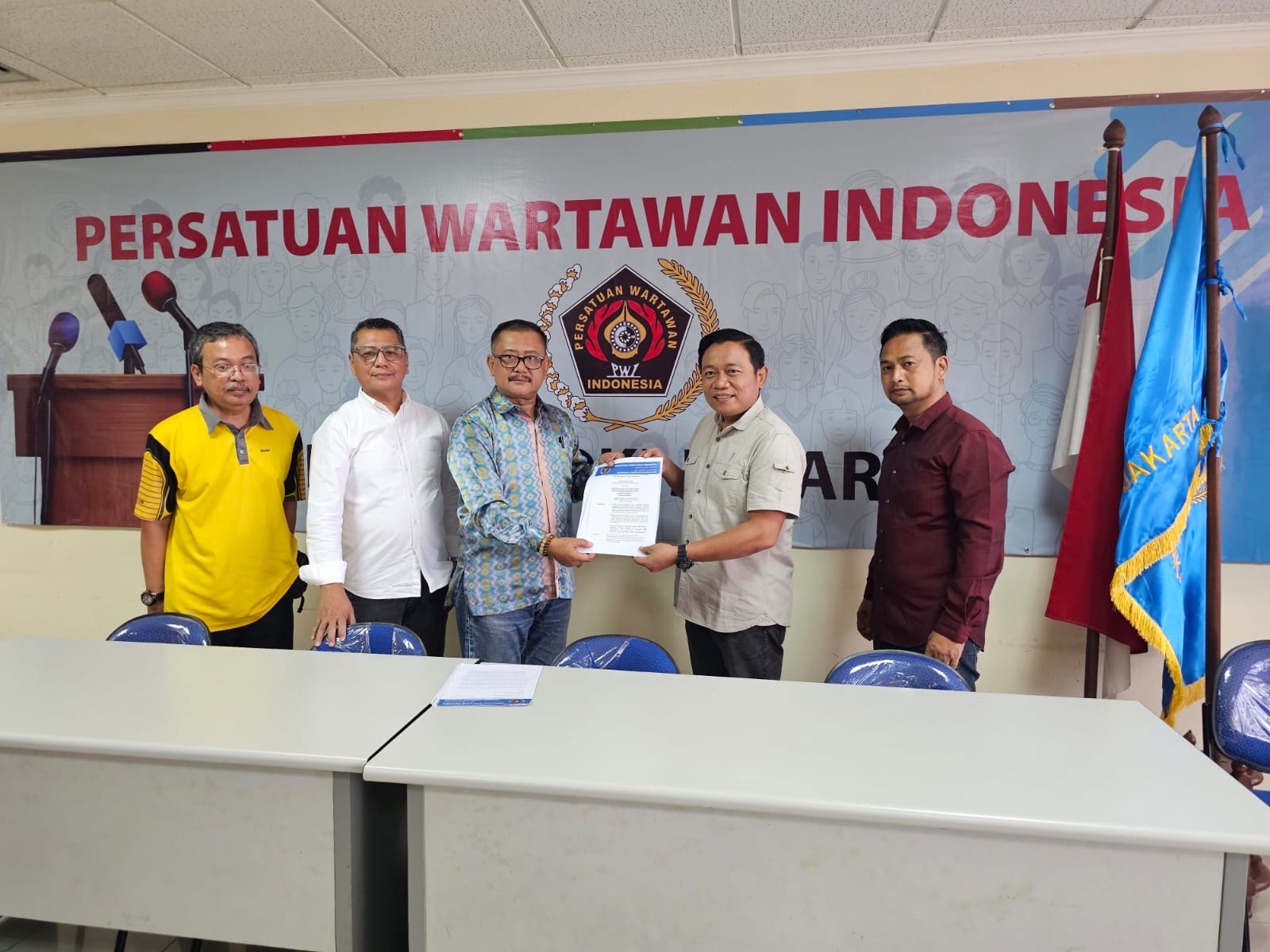 Jakarta – Sekitartangerang Ketua Persatuan Wartawan Indonesia (PWI) Provinsi DKI Jakarta, Kesit Budi Handoyo, bersama Sekretaris Arman Suparman dan Bendahara Dar Edi Yoga, secara resmi menyerahkan Surat Keputusan (SK) Penunjukan Ketua Kelompok Kerja (Pokja) PWI di lingkungan Kantor Walikota Jakarta Barat untuk periode 2024-2029. SK pertanggal 5 September 2024 tersebut diserahkan langsung kepada Noto Prayitno di Markas PWI Provinsi DKI Jakarta, Gedung Prasada Sasana Karya, Jakarta Pusat, pada Senin (9/9).