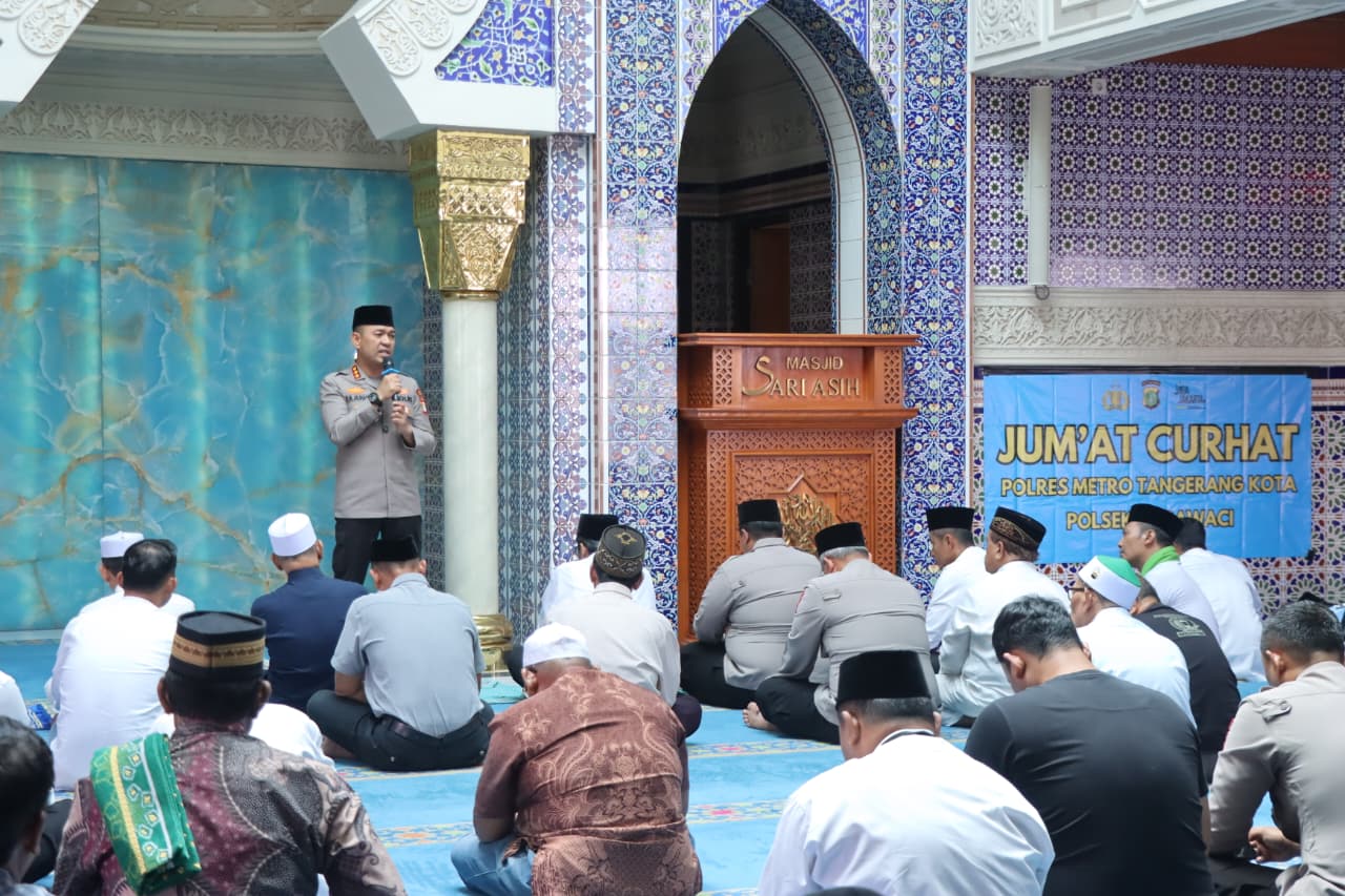 TANGERANG KOTA, Sekitartangerang Program JAGA JAKARTA+ yang diimplementasikan melalui kegiatan Jumat Keliling (Jumling) kembali digelar oleh Polres Metropolitan Tangerang Kota. Kali ini, Kapolres Metropolitan Tangerang Kota Kombes Pol. Dr. Raden Muhammad Jauhari, S.H., S.I.K., M.Si. melaksanakan Sholat Jumat sekaligus kegiatan “Jumat Curhat” di Masjid Sari Asih, Jalan Imam Bonjol, Kelurahan Sukajadi, Kecamatan Karawaci, Kota Tangerang, Jumat (20/2/2026).
