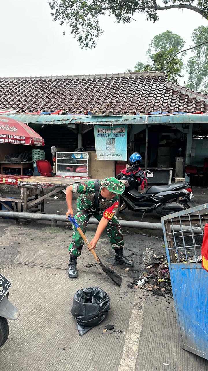 Kerja bakti ini juga mendapat dukungan penuh dari Babinsa setempat, Bapak Mahmudin, yang turut hadir dan memberikan arahan serta semangat kepada para peserta.