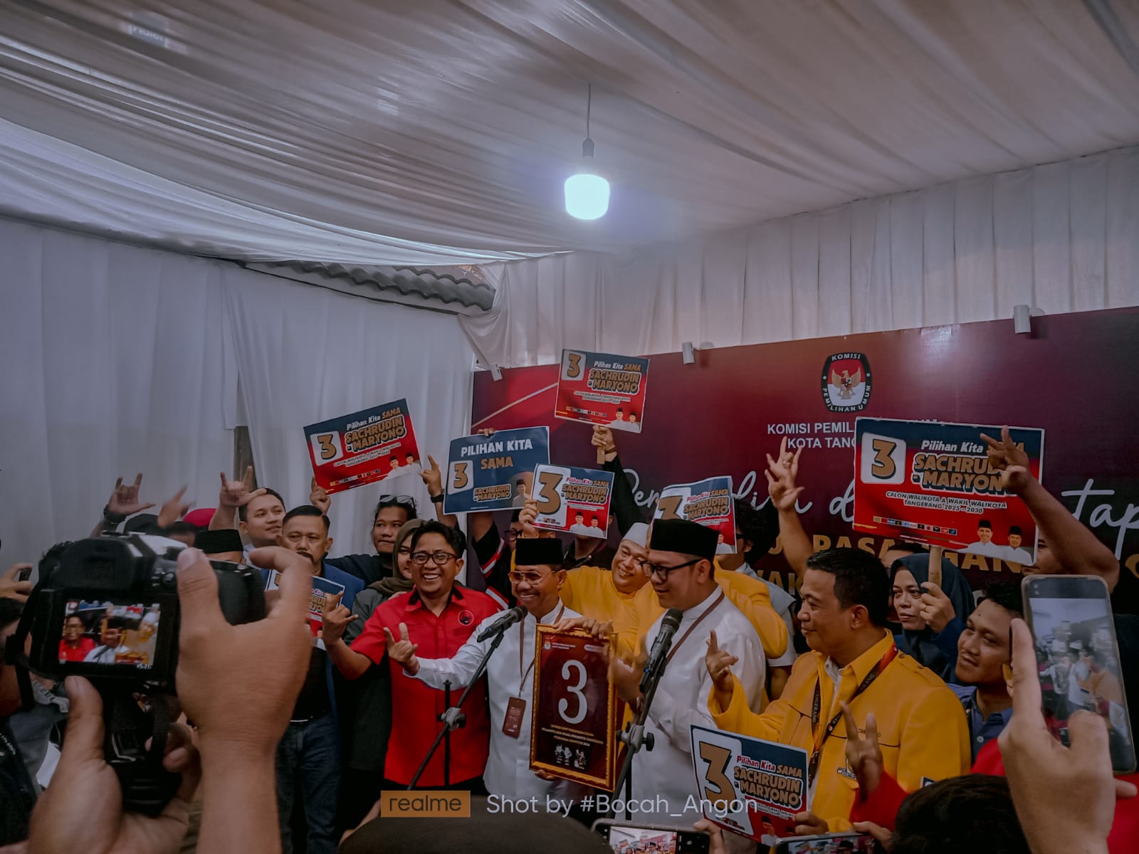 Di tempat yang sama, Maryono, calon wakilnya, menambahkan, “Alhamdulillah kami, H. Sachrudin dan H. Maryono, mendapatkan nomor urut 3. Dalam sila ketiga Pancasila, ‘Persatuan Indonesia’, kami berharap dengan pilihan yang sama, kita bisa bersatu untuk membawa Kota Tangerang menjadi lebih baik.”