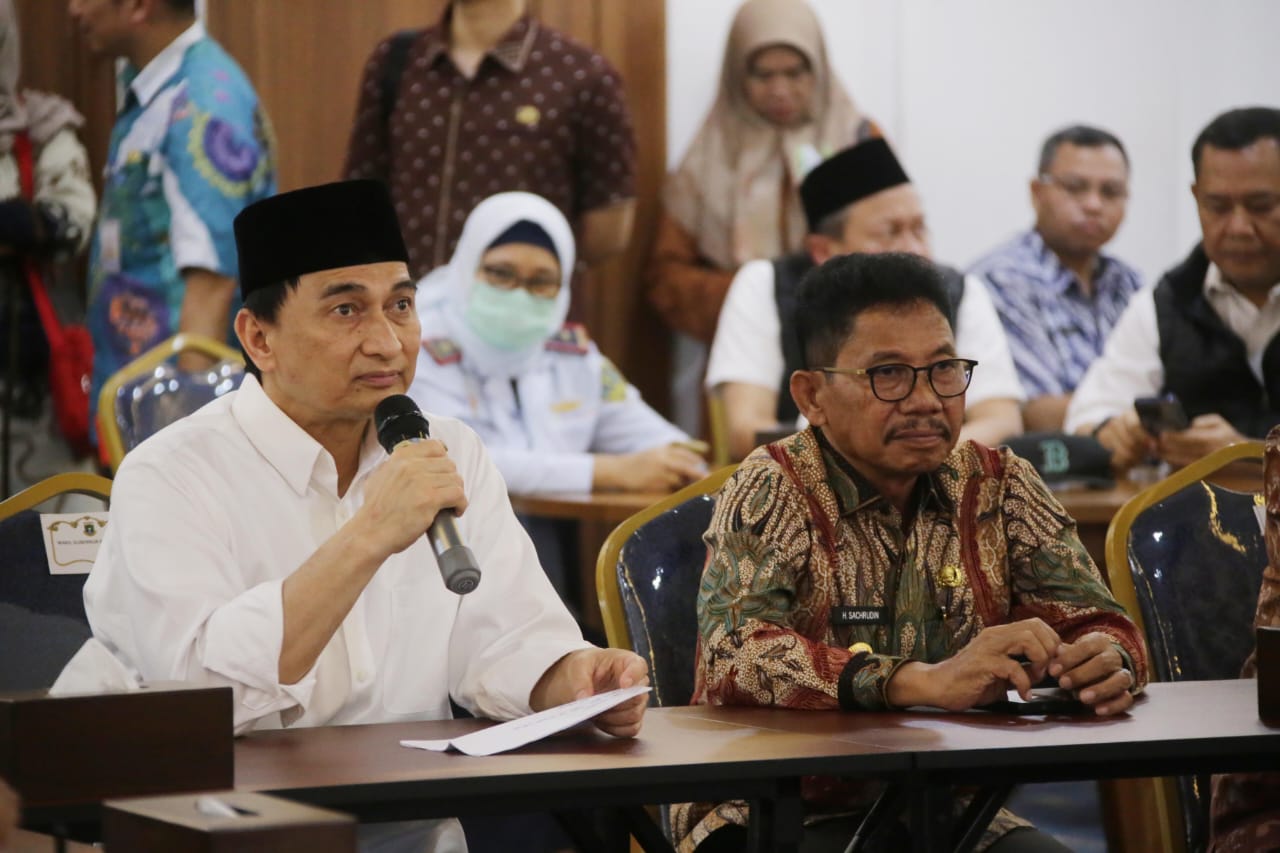 Wali Kota Tangerang, H. Sachrudin, menyampaikan dukungan penuh Pemerintah Kota Tangerang terhadap persiapan Asrama Haji Grand El Hajj Cipondoh sebagai embarkasi dan dembarkasi pada Musim Haji 2025. Ia juga menyampaikan komitmennya untuk mendukung Pemerintah Provinsi Banten dan Kementerian Agama dalam memastikan kelancaran penyelenggaraan ibadah haji.