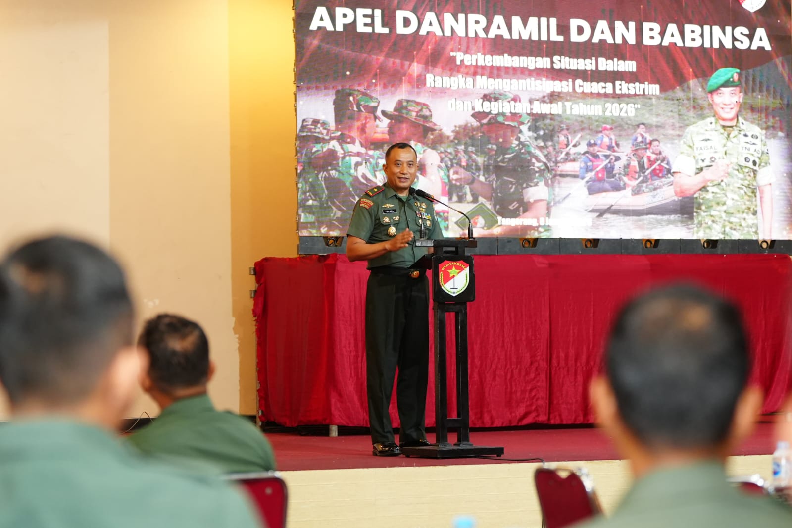 TANGERANG KOTA, Sekitartangerang Komandan Korem 052/Wijayakrama Brigjen TNI Faisal Rizal, S.I.P., memberikan arahan, motivasi, serta penguatan tugas pokok kepada para Danramil, Batuud dan Babinsa jajaran Korem 052/Wkr pada Apel Danramil dan Babinsa di Aula Islamic Village, Karawaci. Tangerang (8/01/2026).