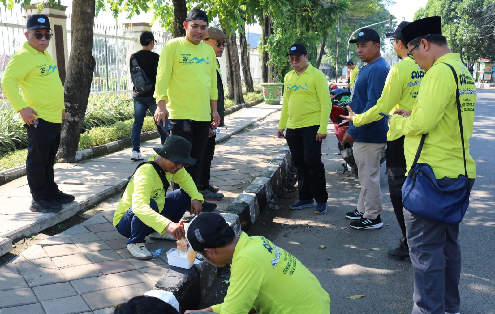 TANGERANG KOTA, Sekitartangerang Dalam rangkaian Peringatan Hari Ulang Tahun (HUT) ke- 30 tahun, Perumda Tirta Benteng Kota Tangerang menggelar Kegiatan Penanaman Penempatan Pohon dan Pengecatan Kanstin di sepanjang Ruas Jalan DR Sitanala, Neglasari Kota Tangerang, Sabtu 4 Oktober 2025.