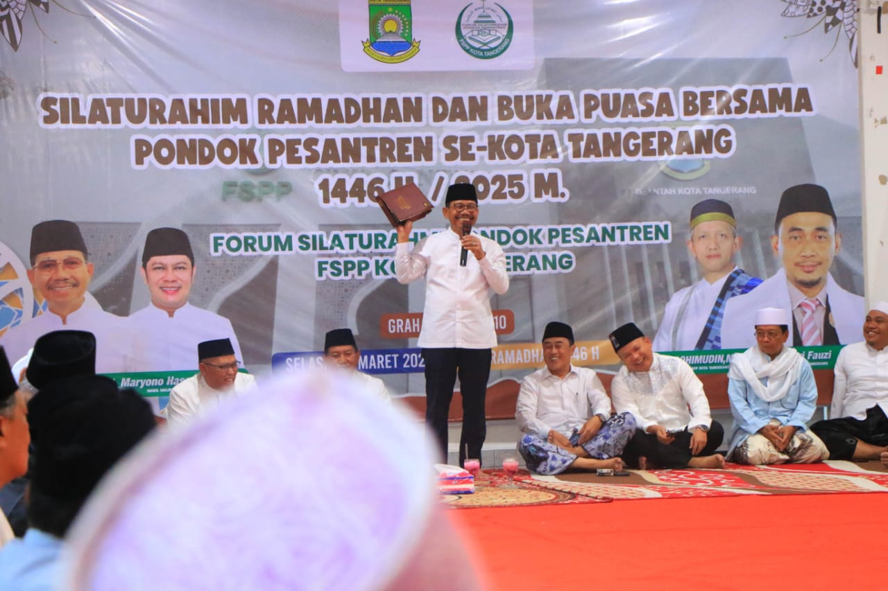 “Alhamdulillah jalinan silaturahmi kita dengan para pimpinan dan lembaga pendidikan pesantren tetap harus terjaga, sebagaimana kita ingin mewujudkan dan melahirkan para santri dan santriwati yang berkualitas, berilmu dan berakhlak mulia bagi Kota Tangerang,” pungkas Wali Kota Tangerang.(bot/ham)