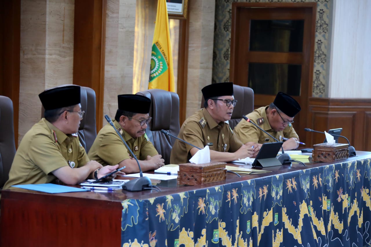 Wali Kota Tangerang, H. Sachrudin, didampingi Wakil Wali Kota, H. Maryono, memimpin rapat koordinasi bersama seluruh Perangkat Daerah di Ruang Rapat Akhlakul Karimah, Gedung Pusat Pemerintahan Kota Tangerang, Senin (3/3/2025). Rapat ini menegaskan komitmen Pemerintah Kota (Pemkot) Tangerang dalam mempercepat pelaksanaan program-program pembangunan serta menjaga kondusivitas selama bulan Ramadan.