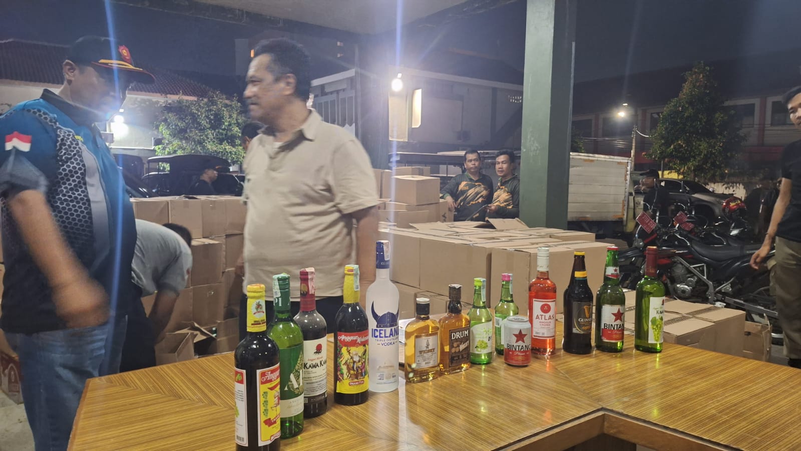 Dalam kegiatan itu, petugas berhasil menyita ratusan dus yang berisi minuman keras dari berbagai merek, dan mengamankan seorang pemilik berinisial S.