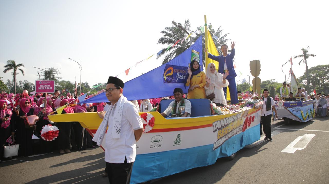 TANGERANG KOTA, Sekitartangerang Menyambut peringatan Maulid Nabi Muhammad SAW, tiga masjid di Kota Tangerang yaitu Masjid Raya Al-A’zhom, Masjid Al-Ittihad, dan Masjid Kali Pasir berkolaborasi untuk menggelar arak-arakan Perahu Maulud. Pawai tersebut dilakukan di dua lokasi yakni dari Masjid Kali Pasir menuju Pasar Lama dan ke Masjid Al-Ittihad dan dari Masjid Raya Al-A’zhom menuju Masjid Al-Ittihad.