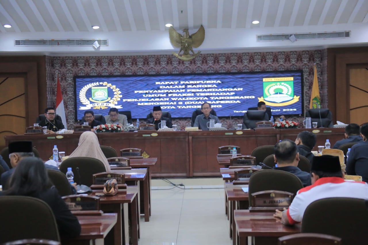 Tangerang – Sekitartangerang Dalam rangkaian proses legislasi dua Raperda Kota Tangerang, Wali Kota H. Sachrudin bersama Wakil Wali Kota H. Maryoni Hasan menghadiri Rapat Paripurna Dewan Perwakilan Rakyat Daerah (DPRD) untuk menyampaikan jawaban atas Pandangan Umum yang disampaikan oleh fraksi-fraksi.