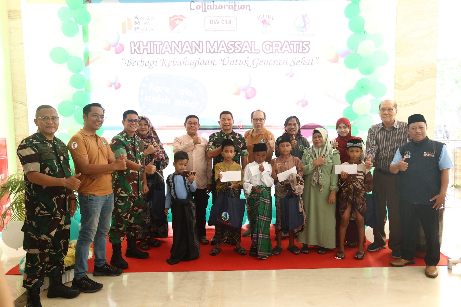TANGERANG KOTA, Sekitartangerang Sebagai wujud kepedulian terhadap kesehatan dan kesejahteraan masyarakat, Koramil – 04/Cengkareng bekerja sama dengan Golf Lake Residense gelar sunatan massal gratis kepada anak-anak di lingkungan jalan Kapuk RW 19 Kelurahan Cengkareng Timur. Bertempat di Golf Lake Residence, Kapuk, Cengkareng, Jakarta Barat. Sabtu (19/4/2025).